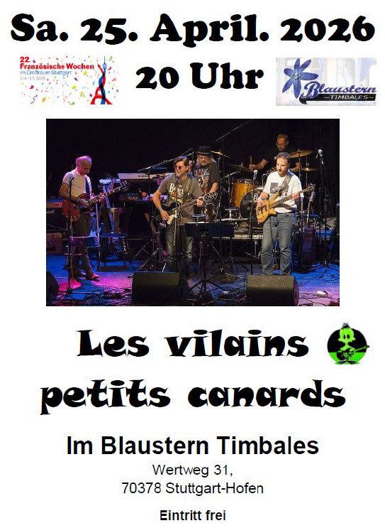 Weiter geht es dann mit einem besonderen Konzert im Rahmen der französischen Tage. Am 25.04.2026 spielen wir wieder als „Les vilains petits canards“ im Timbales französische Lieder. So war es 2024.